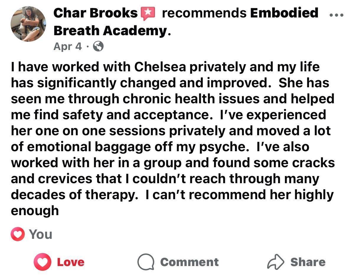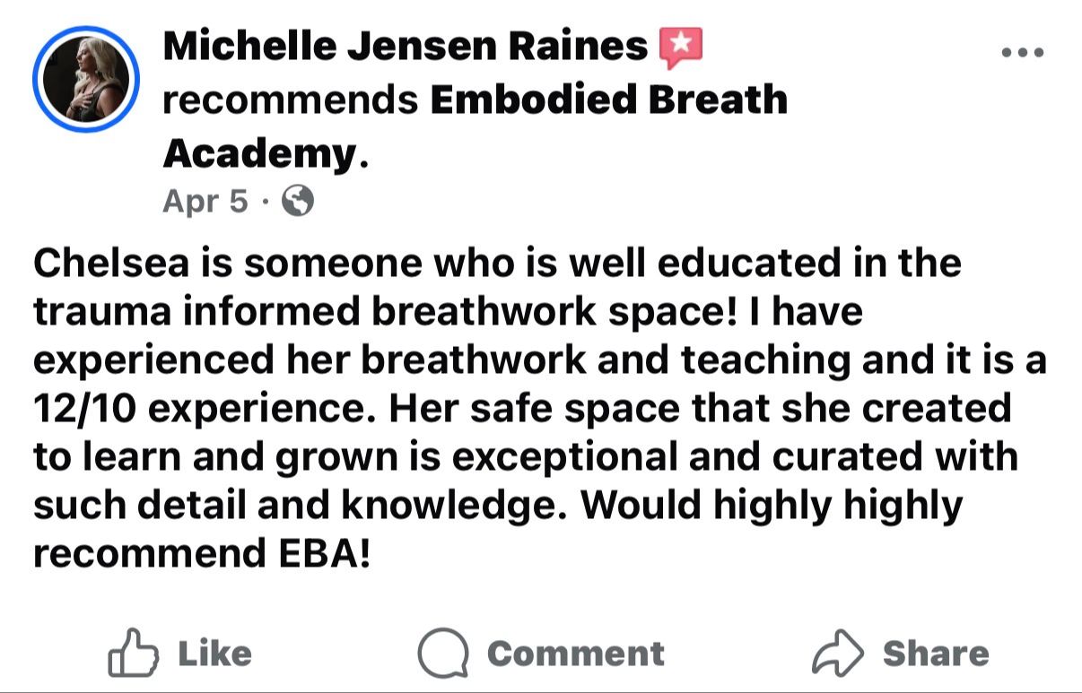 Guided by Chelsea Reinbold, trauma-informed breathwork facilitator and founder of Embodied Breath Academy or graduated EBA student